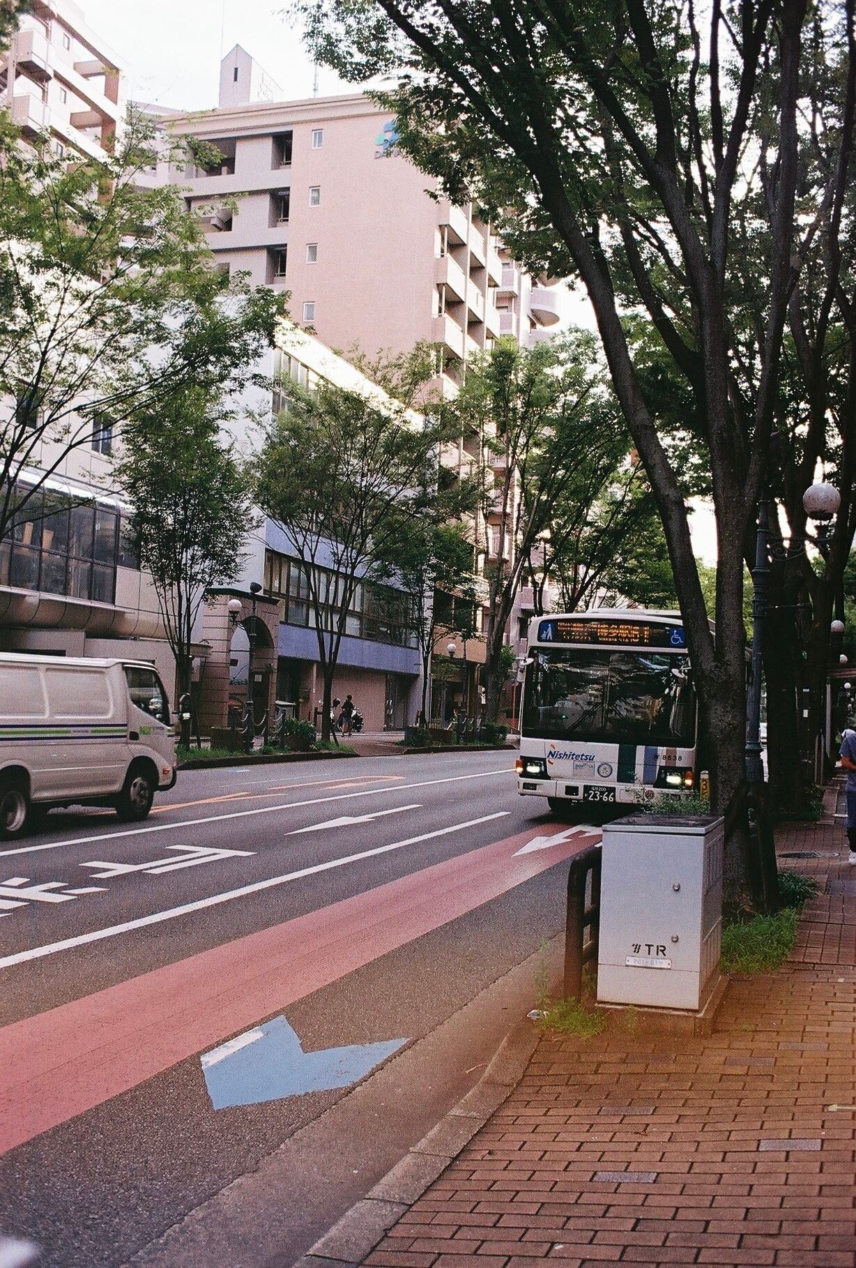 個人的に福岡でも雰囲気が一番好きな通り”けやき通り”博多駅行きの西鉄バスとのセットで福岡ならではの風景。